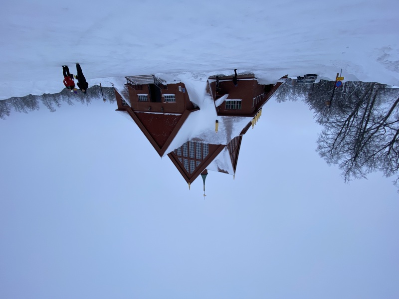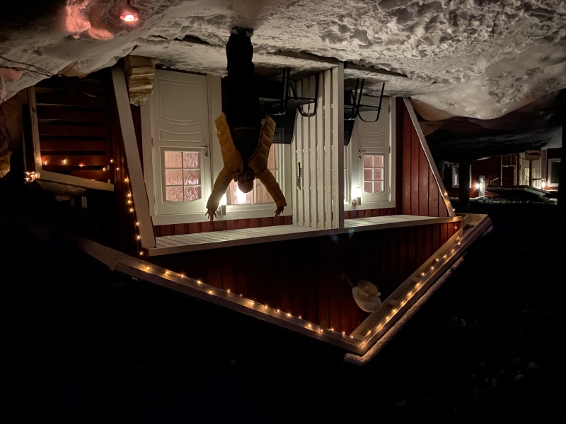 A few weeks later, the time came to fly to Kiruna. We were obsessively looking at the weather forecast, and by then we've both installed an Aurora forecasting app. It didn't look good. Rain was forecasted for most of our stay, and solar activity seemed low. We tried to see if it was possible to change the dates of our trip, but most plane tickets were sold out, and there wasn't much we could change about accommodation. I am not superstitious, nor can I control the weather, but maybe I shouldn't have joked about it on our way back from Gärdet. Early in the morning we caught our flight. We must have been sleeping on the airplane, because in an instant we were lugging our bags over the fresh snow, blinded by light.