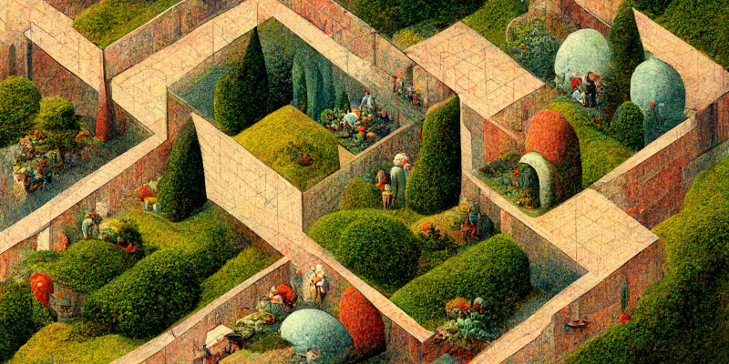 midjourney: a wall around the garden of infinite delights isometric perspective in the style of bruegel --ar 2:1